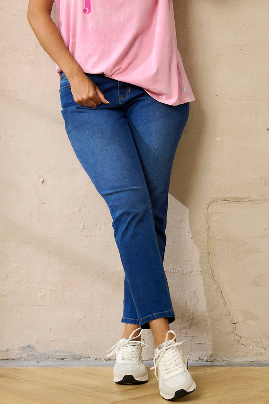 Zhenzi jeans blauw driekwart met omslag print model Stomp 127