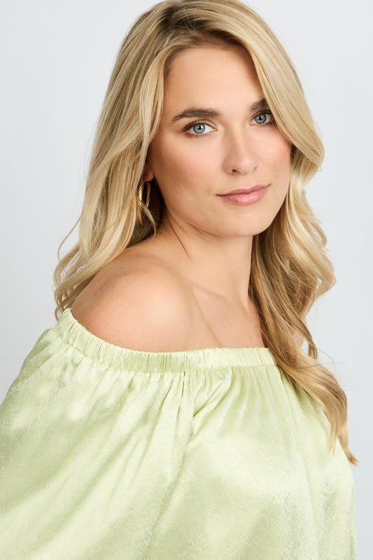 Fluresk groen offshoulder blouse model Yulieth top vivid pistache