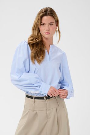 Kaffe blouse lichtblauw met offwhite pinstripe model Kajada nantucket breeze stripe