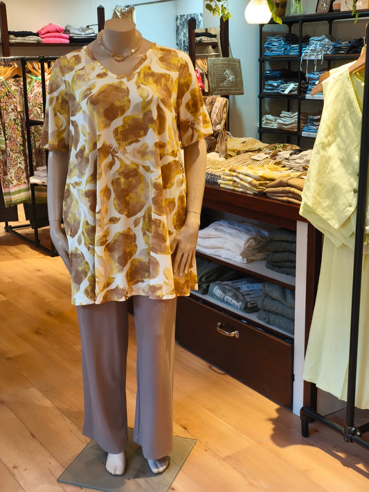 Yest Curve tuniek geel zandkleurige print model Ankie Essential Raffia multi colour A006402