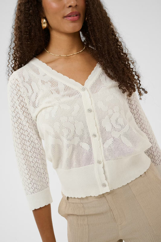 Cream vest off white met bloemen knoopjes zilverkleur model CROluki knit cardigan