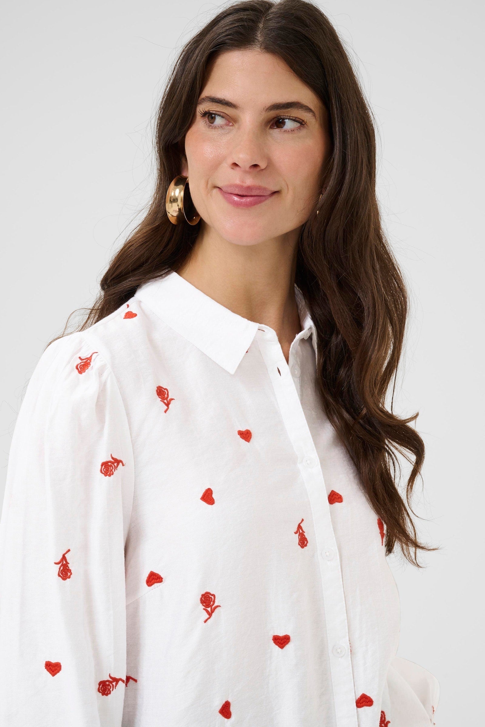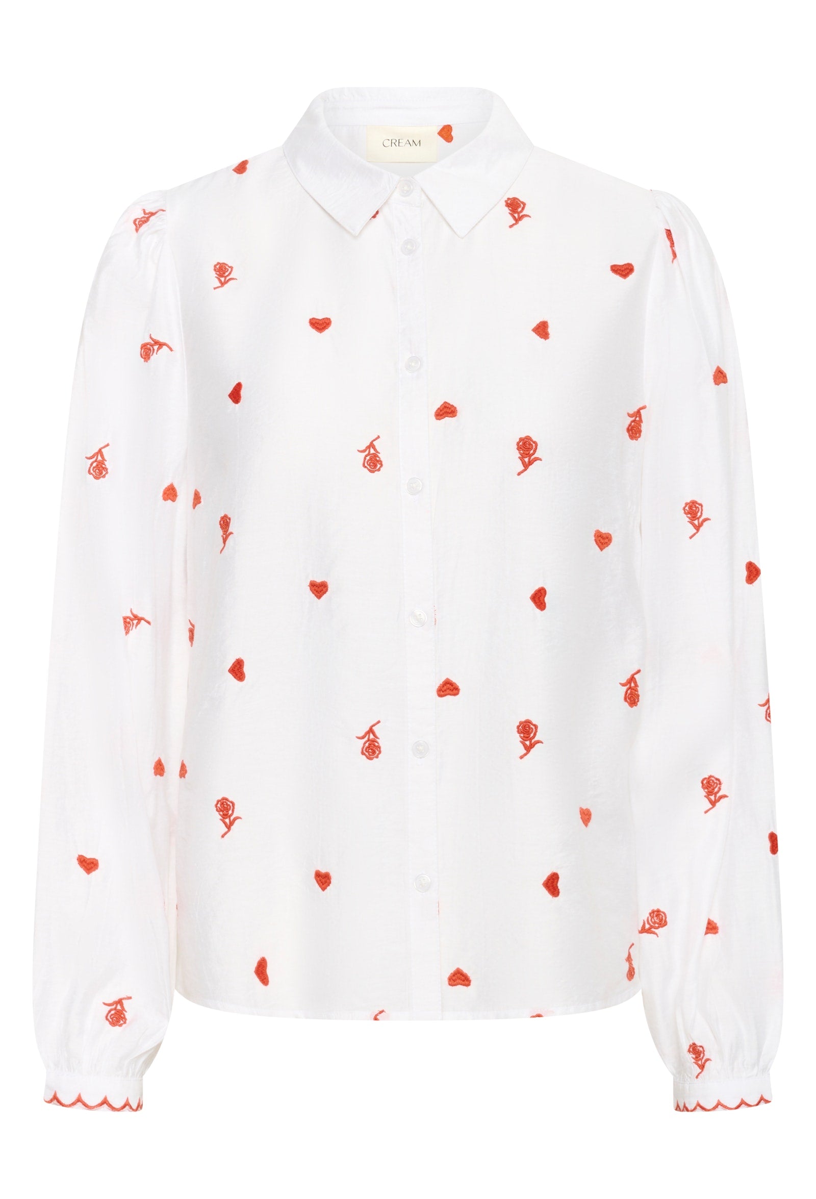 Cream blouse offwhite met rood borduursel model CRjeanne