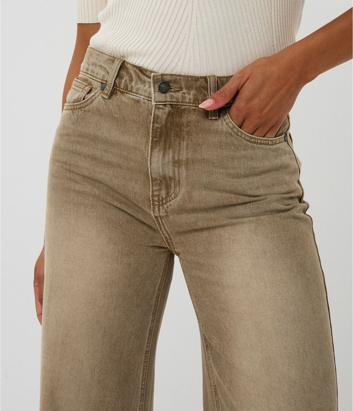 Esqualo jeans bruin model wide leg garment dye F25.12504