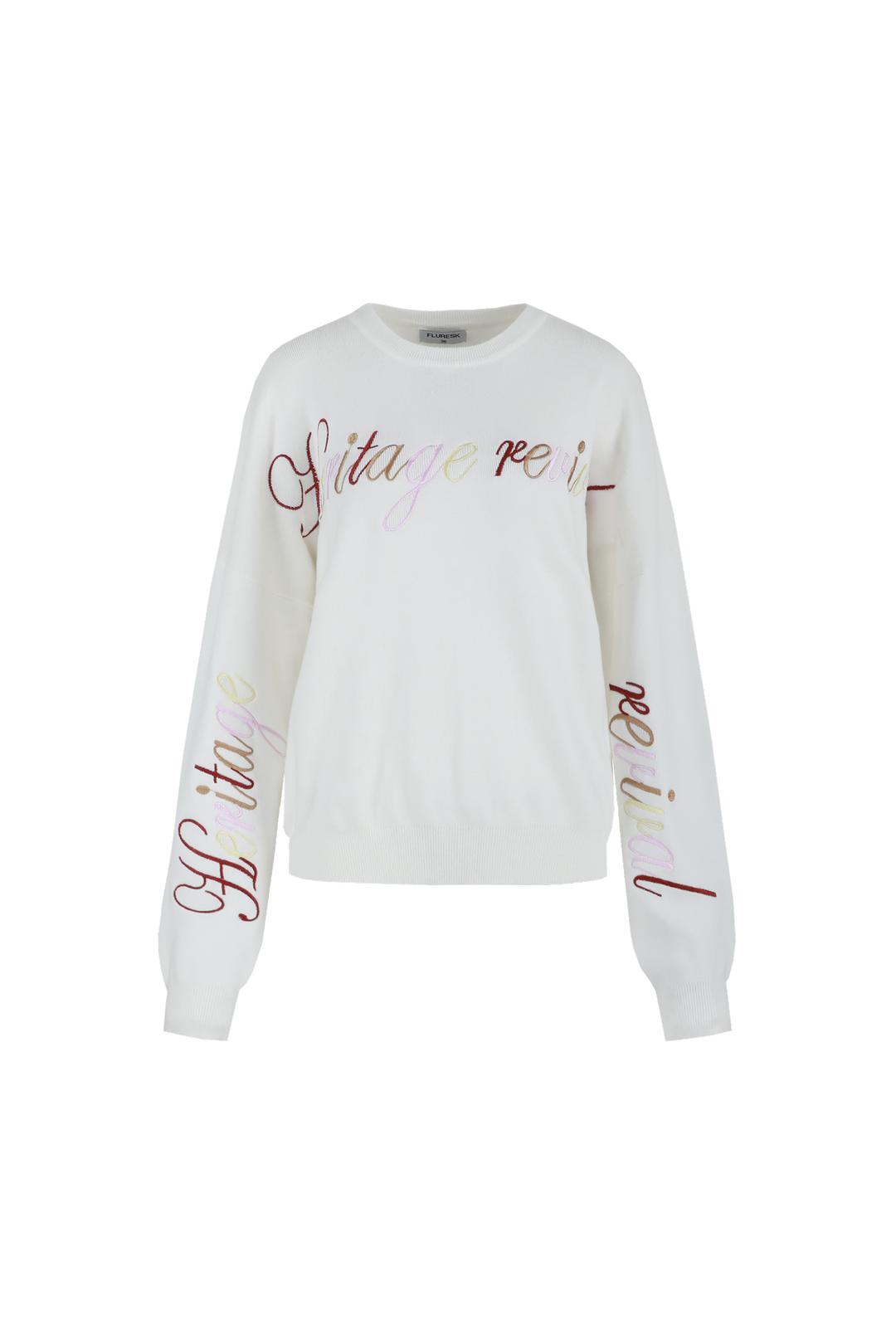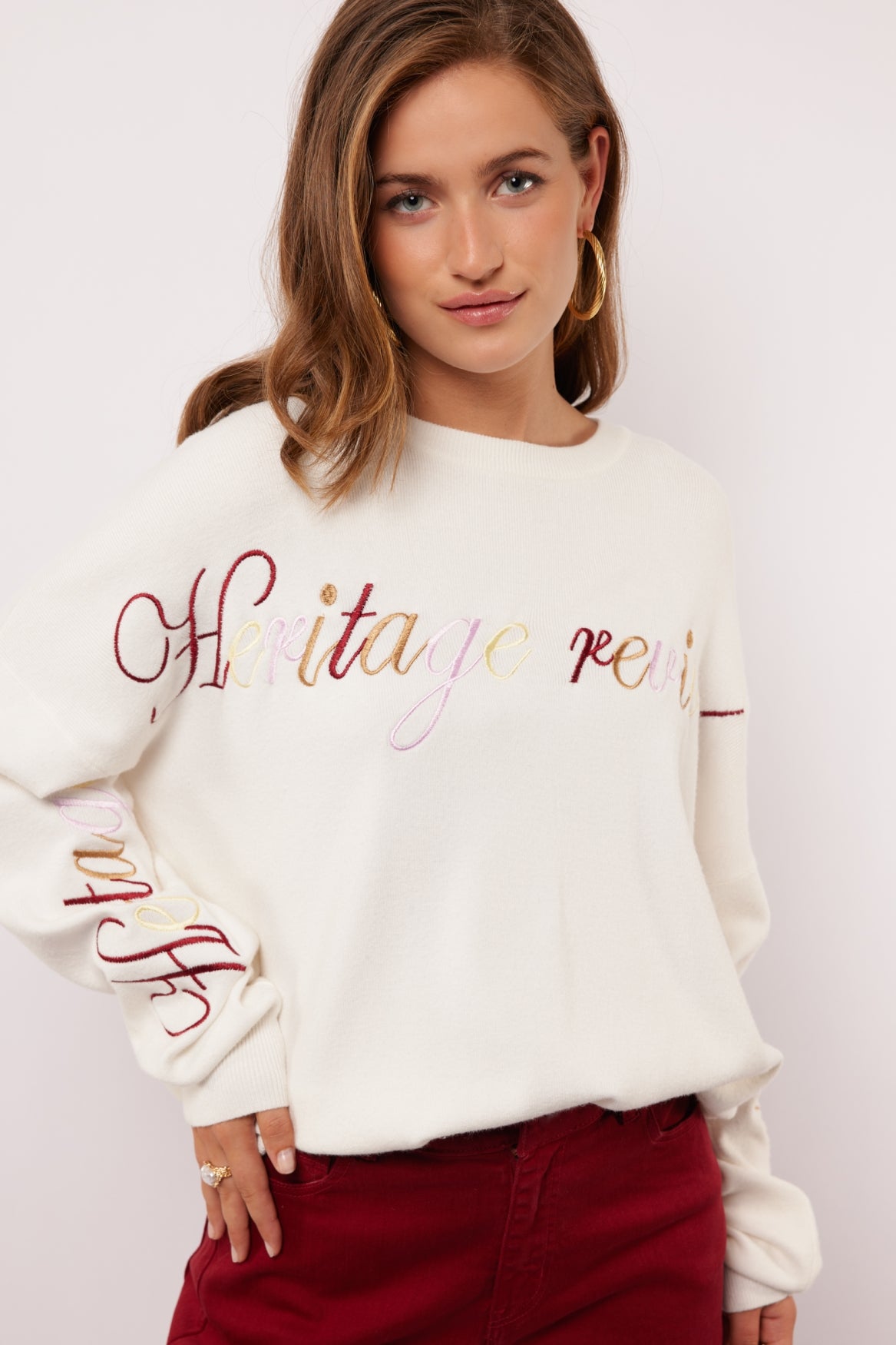 Fluresk sweater knit offwhite met gekleurde tekst model Veraline