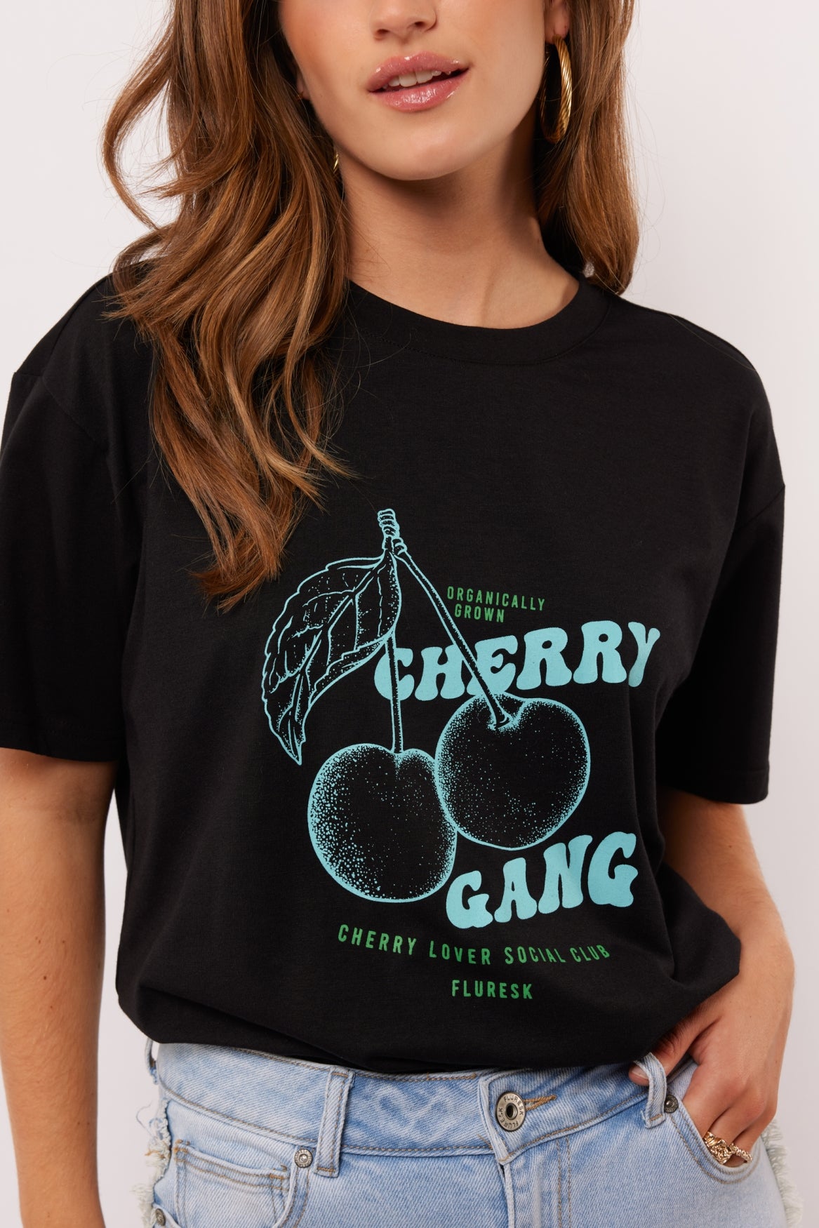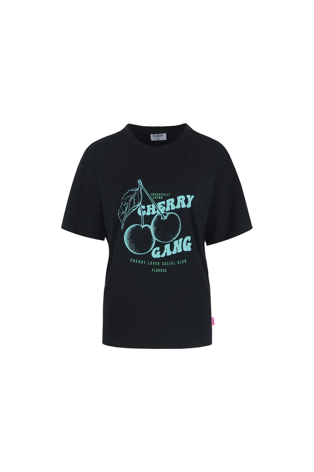 Fluresk T-shirt zwart met blauw groene opdruk model Miralda black