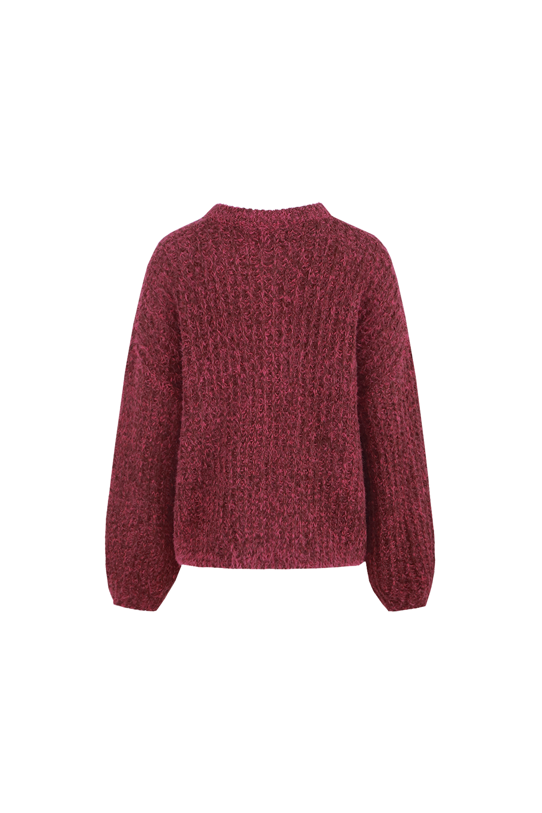 Fluresk vest roze met bruin model Kalista knit cardigan mocha brown raspberry