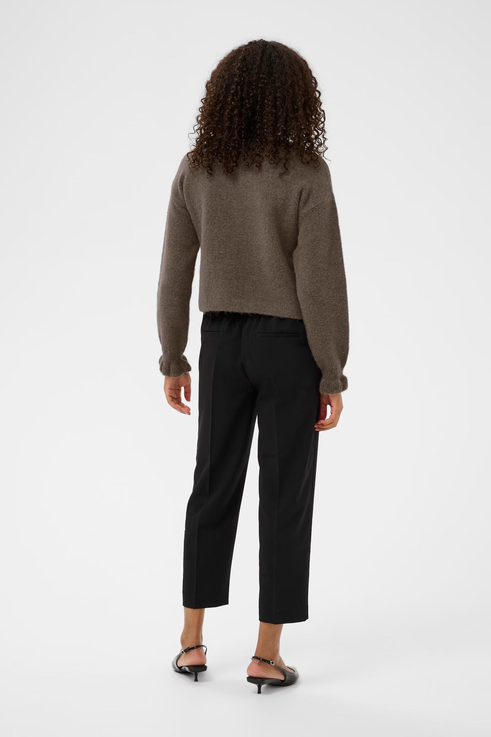 Kaffe vest taupe morel kleur met parel knoopjes ruffle mouw KAcourson knit cardigan